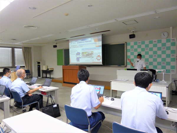 本講義は昨年度より引き続き依頼があったもので、「予防実務(人材育成)」と題して、総務省消防庁が主催する第6回及び第7回予防業務優良事例表彰にて表彰された事例をもとに、当消防本部の予防業務における各種取り組みについて紹介しました。