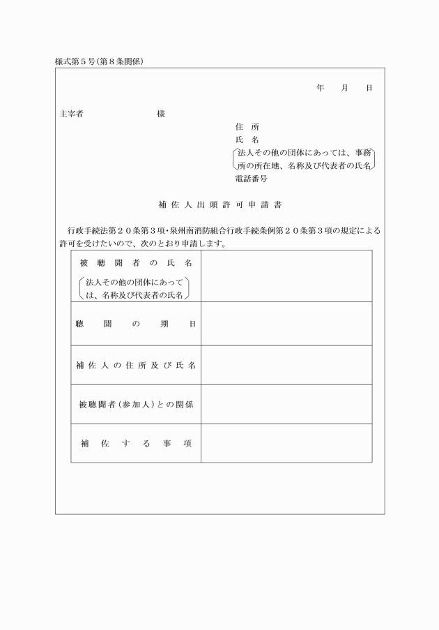 第5条 法第17条第1項又は条例第17条第1項の規定により主宰者が関係人に対し聴聞に関する手続に参加することを求めるときは、当該聴聞の期日の1週間前までに通知しなければならない。