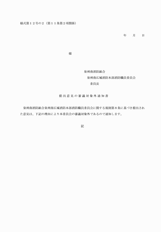 2 事務局は、各組織区分から提出された意見取りまとめ者推薦書をとりまとめて、消防長に意見取りまとめ者推薦報告書(様式第7号)で報告するものとする。