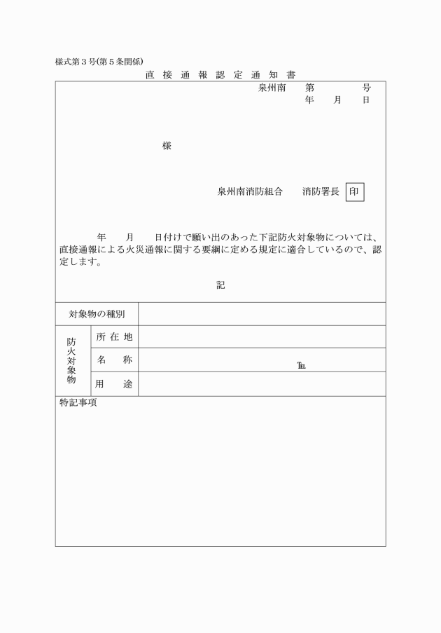(1) 有人対象物については、直接通報認定願出書(様式第1号)により行わせること。