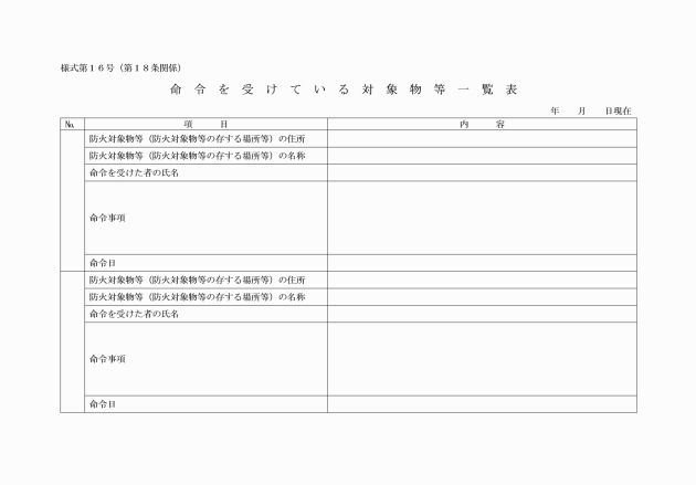 2 予防課長は、命令を受けている防火対象物等一覧表(様式第16号)により速やかに本消防組合のホームページ上において公表するものとする。