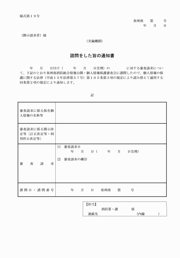 19 | 諮問した旨の通知書 | 法第105条第3項において準用する同条第2項 |